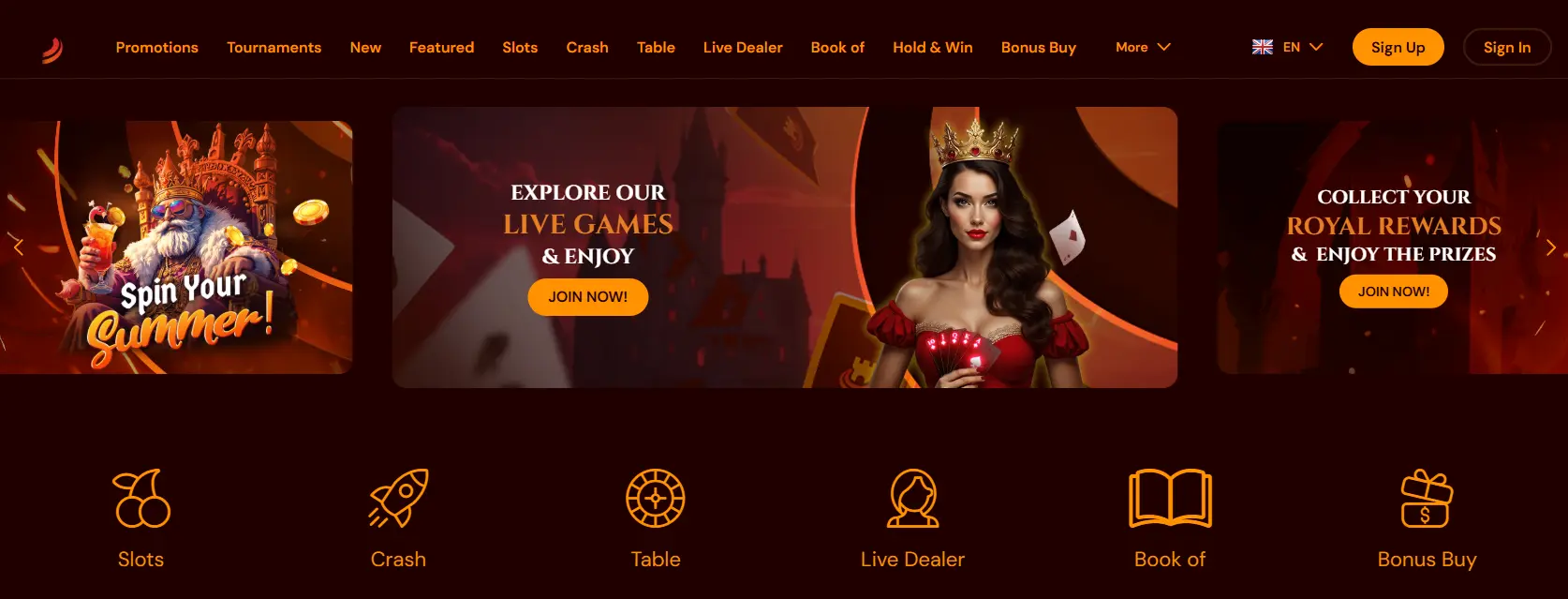 They’ve added Bonus Buy slots if that’s your thing, just watch your balance, as those features can burn through cash fast if you’re not careful. To make browsing easier, slots are grouped by themes like “Book of”, so you’re not stuck scrolling through random titles.